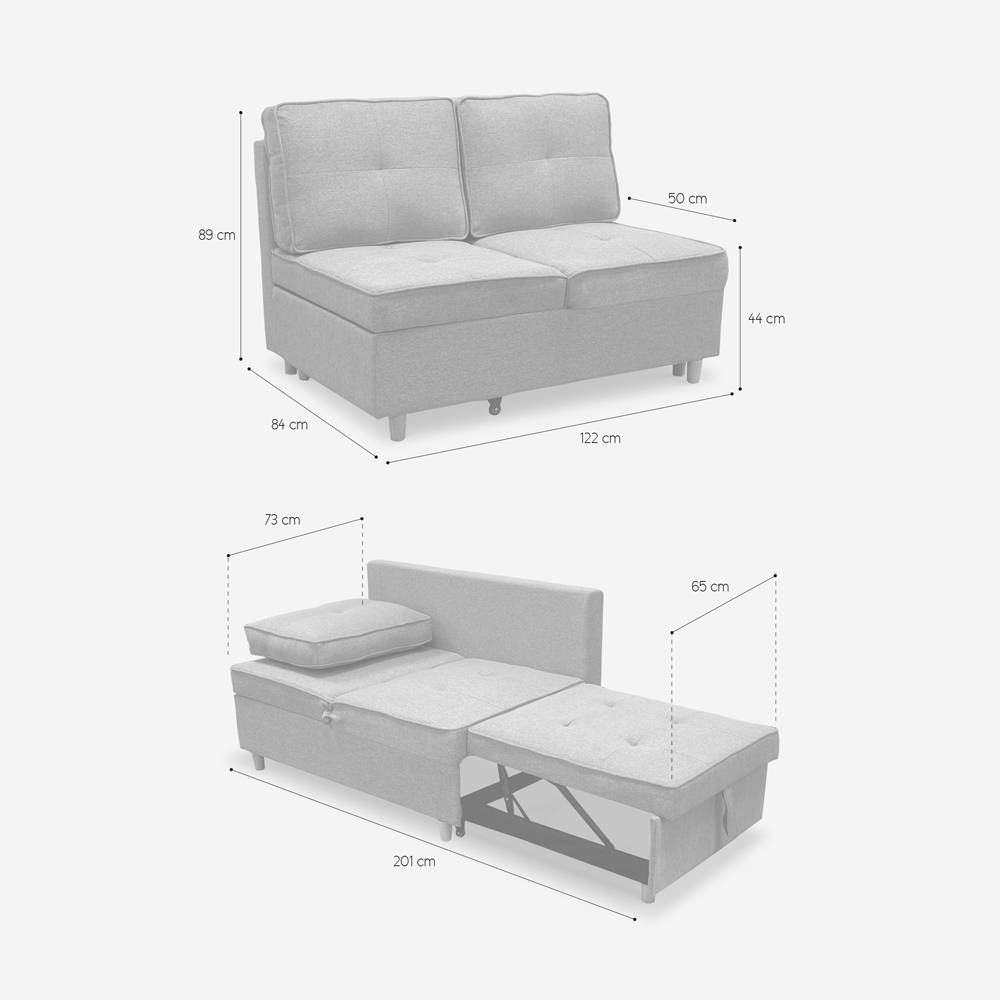 Divano 2 posti convertibile tessuto grigio salvaspazio Ginepro